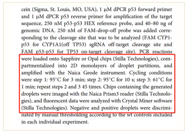 CRISPR-Cas9技術(shù)徹底改變了基礎(chǔ)生物研究和應(yīng)用生物技術(shù)的許多領(lǐng)域。但在臨床基因治療實施中脫靶效應(yīng)的檢測仍然存在難題。德國漢堡大學(xué)-艾本多夫醫(yī)學(xué)中心(UKE)干細胞移植、細胞和基因治療研究所的學(xué)者們近日在知名雜志《Molecular Therapy》上發(fā)表“LATE–a novel sensitive cell-based assay for the study of CRISPR/Cas9-related long-term adverse treatment effects”的文章,建立了稱為LATE(長期不良治療效果鑒定檢測)的新型檢測方法,該方法使用Stilla naica®微滴芯片數(shù)字PCR系統(tǒng)檢測低頻的脫靶事件,且有助于分析Cas9脫靶切割效應(yīng)的影響,并可在單細胞層面進行評估。