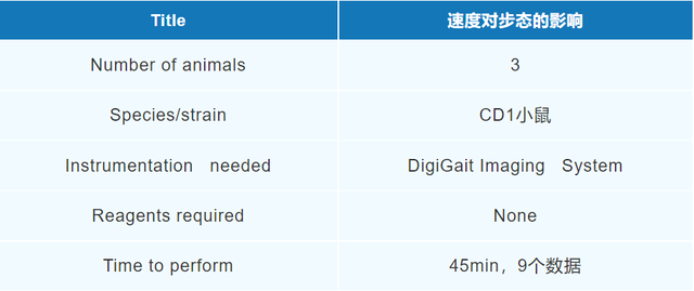 這個Protocol主要研究大/小鼠通過如何調整步態增加行走速度。研究人員將了解到即使是很小的速度變化對步態改變也有很大的影響。
