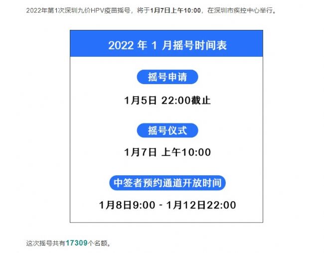 HPV九價疫苗2022年首次搖號儀式將于1月7日上午在深圳市疾控中心舉行,深圳衛健委平臺已于近日開放申請。HPV是