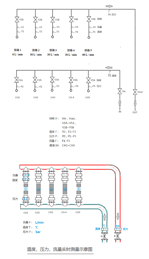 ③ 流量5路:F1 ~ F5,(F1:0~16.0 L/min;F2-F3-F4:0~40.0;F5:0~100.0)