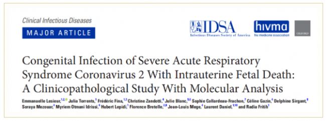 最近,人們發(fā)現(xiàn)新冠病毒SARS-CoV-2有可能在母嬰之間進(jìn)行垂直傳播,而這種傳播的后果,無論是胎兒還是新生兒,均尚不清楚。來自法國艾克斯-馬賽大學(xué)的科學(xué)家在《Clinical Infectious Diseases》雜志上發(fā)表了一篇名為Congenital Infection of Severe Acute Respiratory Syndrome Coronavirus 2 With Intrauterine Fetal Death: A Clinicopathological Study With Molecular Analysis 的文章,該文章是關(guān)于SARS-CoV- 2因母胎傳播而繼發(fā)胎死腹中并伴有先天性感染,胎盤和胎兒組織損傷的第一篇報道。