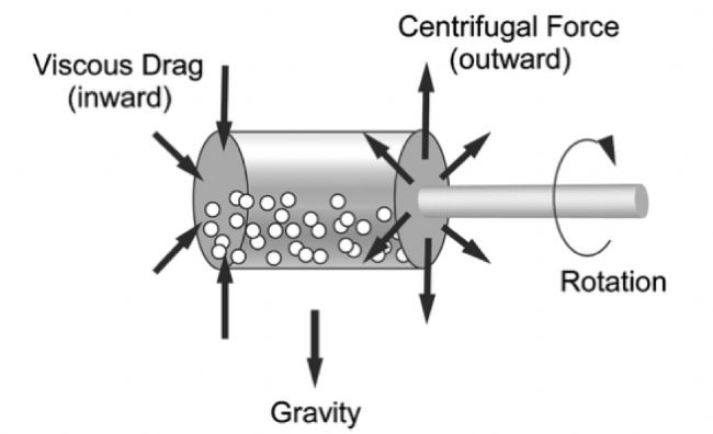 顆粒在離心力,氣流作用以及重力的作用下實現旋轉流化