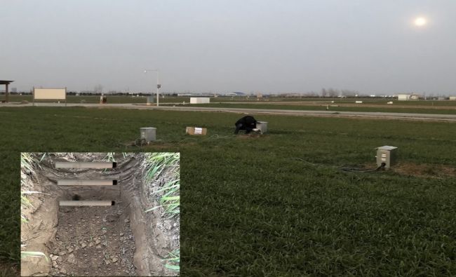 試驗于2018年在安徽省蚌埠市五道溝水文水資源實驗站進行。該地區(qū)屬暖溫帶半濕潤季風(fēng)氣候區(qū),四季分明,雨熱同期。降雨量年際變化大,多年平均降雨量為899mm,其中汛期(6-9月)占63.8%,多年平均蒸發(fā)為1181.3mm。地下水位在1-3m變化,作物以玉米、小麥和大豆為主。土壤類型主要是砂姜黑土(54%) 和黃潮土(33%)。砂姜黑土以形狀、色澤似生姜而得名,其土壤粒徑0.01-0.05mm的占40%,粒徑0.005-0.001mm的占25%。凋萎含水率為10%-13%,田間持水率為28%-30%。