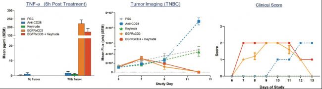 圖3為靶向EGFR的CD3雙特異抗體與Keytruda聯合治療的實例。結果表明,聯合用藥不會增加治療毒性,但也不會產生任何療效優勢。