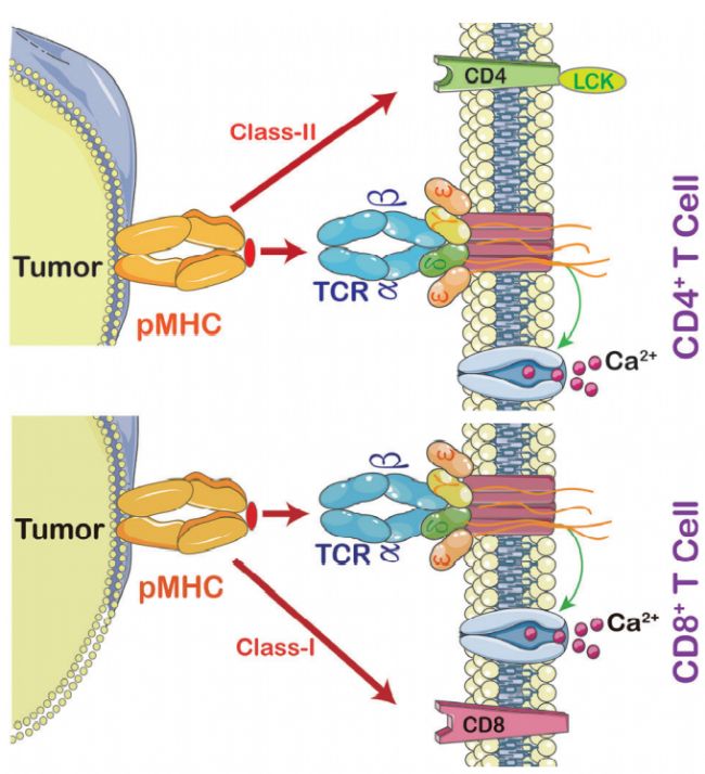 TCRs與pMHC(peptide-MHC)相互作用的強弱決定了未成熟胸腺細胞的命運,對幼稚T細胞的存活至關重要。因此,TCR-T免疫治療技術通過與MHC特別是Ⅱ類分子的有效相互作用激活宿主的免疫系統,后者被TCR-T細胞和CAR-T細胞特異識別。TCR-T細胞可以識別細胞內的腫瘤特異性抗原,而CAR-T細胞主要識別腫瘤表面的特異性抗原。這使得TCR-T細胞在腫瘤治療中更有效。