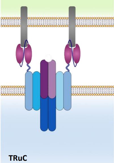 T細胞受體融合結構(TRuCs),一種與T細胞受體亞單位融合的抗體結合域,設計用于有效識別腫瘤表面抗原。TRuCs由靶向腫瘤相關抗原的特異性抗體融合到5個TCR亞基(TCRα、TCRβ、CD3ϵ、CD3γ和CD3δ)的胞外N-末端組成,為工程化T細胞提供了新的靶向特異性和HLA非依賴性靶細胞清除能力,可被相應的靶細胞激活。