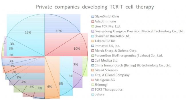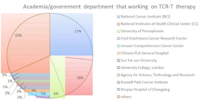 共有83名贊助者/合作者發起或參與TCR-T細胞治療的研究,包括美國國家衛生研究院(NIH)、政府組織、行業和大學/學術機構。目前,美國國家癌癥研究所(NCI)共支持了53個TCR-T項目,占到了所有正在進行項目的20%。