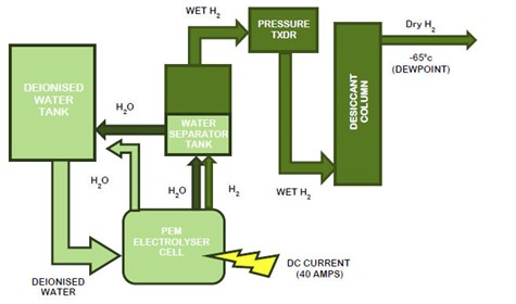 當(dāng)氫氣通過一個吸附塔進行凈化時,少量干燥氫氣會被用于另一個吸附塔以反吹以使吸附塔再生。即當(dāng)吸附飽和時,吸附材料會再生,為下一次吸附做準(zhǔn)備。