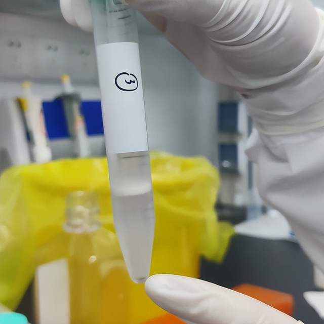 6、轉移細胞樣本至15mL離心管,加入去碎片試劑后混勻,上層鋪預冷的PBS,3000×g, 4℃,升速為5,降速為3,離心10min,保留下層細胞后洗滌收集。
