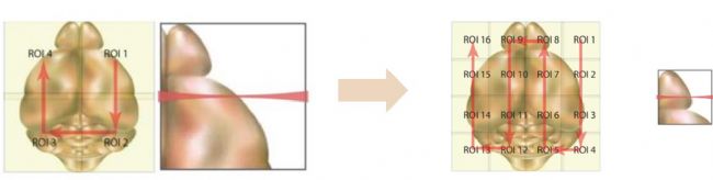 LS18平鋪光片顯微鏡具有各向同性分辨率的成像能力,但我們建議用戶應(yīng)在特定應(yīng)用中合理地選擇空間分辨率及平鋪次數(shù),兼顧數(shù)據(jù)存儲、軟件圖像處理能力和數(shù)據(jù)分辨率之間的平衡,毋庸贅述圖像采集時間和數(shù)據(jù)量隨3D 空間分辨率和組織大小成比例增加。锘海LS18平鋪光片顯微鏡給予客戶更大權(quán)限的選擇,可靈活選擇少量平鋪、不平鋪傳統(tǒng)光片成像模式,可有效提高成像效率、縮短成像時間、減輕對數(shù)據(jù)存儲和處理壓力,對于僅僅是簡單定性或分辨率要求不高的成像實驗相對高效。同時亦可以選擇多次平鋪的專利模式,可以有效提升采集信號的各項等性空間分辨率,滿足高質(zhì)量數(shù)據(jù)的解讀需求,此類模式在同等空間分辨率條件下,成像效率、成像時間顯著優(yōu)于傳統(tǒng)光片對數(shù)據(jù)的采集。