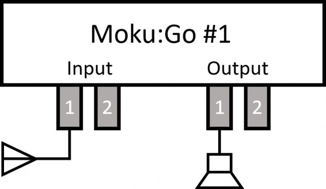 ○ 將您的揚聲器連接到Moku:Go #1的輸出1。