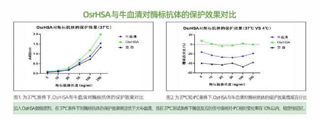 但BSA主要是通過牛血漿提取,血清中殘留的IgG,蛋白酶,激素,脂肪酸等物質,不論經過多么精細的提純工藝,都會因為白蛋白本身作為一個結合蛋白有微量的殘留,在一些血液樣本,尤其是微量樣本檢測時,無法達到理想的靈敏度和精準度。