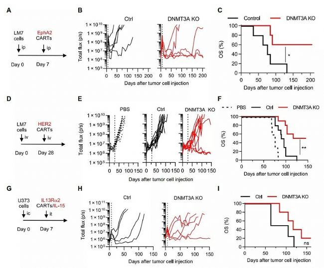 敲除DNA甲基轉移酶3α( DNMT3A)的T細胞對CAR-T細胞療法的影響