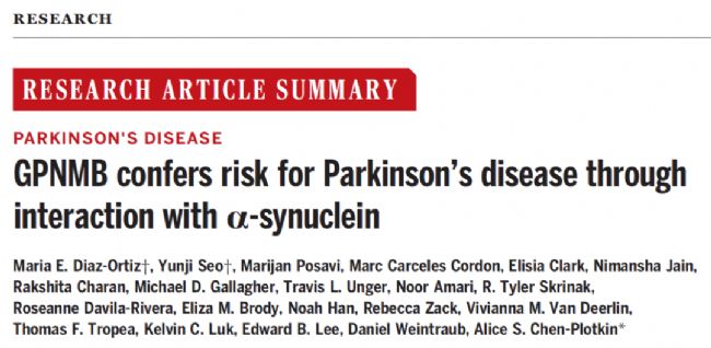 近日,美國賓夕法尼亞大學(xué)的研究人員在 Science 發(fā)表了題為:GPNMB confers risk for Parkinson’s disease through interaction with α-synuclein 的研究論文。