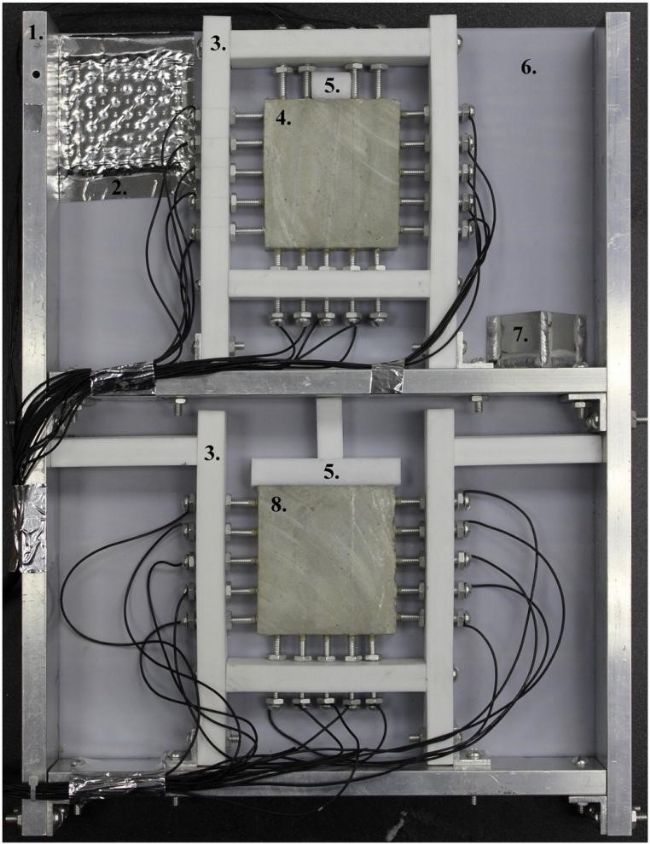 表面安裝電極放置在樣品的周邊表面。電極是通過(guò)在水泥漿表面直接涂上一薄層膠態(tài)銀涂料,然后在銀涂料上涂上一層導(dǎo)電的填充銀的環(huán)氧樹(shù)脂制成的。銀漆層旨在使水泥漿表面光滑,以獲得更好的電接觸。通過(guò)將鋁螺釘用力接觸安裝電極的表面,將電極連接到測(cè)量單元。總共15個(gè)電極安裝在1D流動(dòng)樣品上(除頂部外,每側(cè)5個(gè)電極),如所示Fig. 2b.在2D血流樣本的情況下,安裝了19個(gè)電極,如所示Fig. 2c.電極在垂直方向上的長(zhǎng)度為8.0毫米,覆蓋了樣品的整個(gè)厚度。樣品尺寸和電極編號(hào)如所示Figs. 2b和c在拍照Fig. 2a顯示了安裝電極后的2D血流樣本。用透明膠帶密封周邊表面上電極之間的空間,以避免蒸發(fā)。