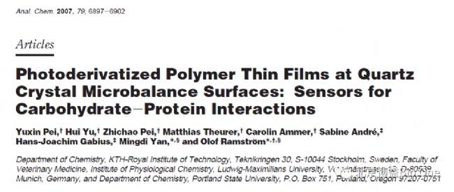 1、實驗概述:基于聚多巴胺制備碳水化合物芯片,用于通過QCM生物傳感器實時測定碳水化合物與凝集素的相互作用。