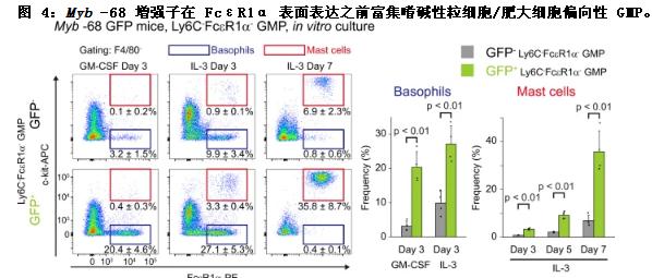 嗜堿性粒細胞和肥大細胞分化的Myb增強子引導分析