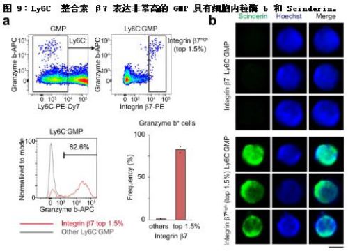 Fig. 9: Ly6C- GMPs with very high expression of Integrin β7 have intracellular Granzyme b and Scinderin.