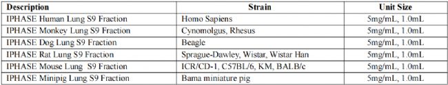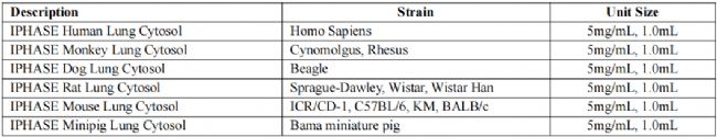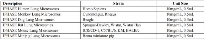 表1 IPHASE肺微粒體產品