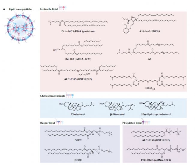 圖3 脂質納米顆粒的主要脂質成分[1]