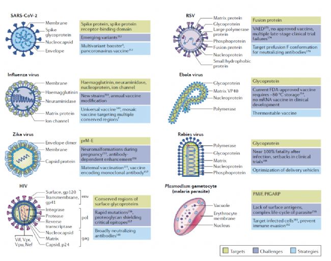 病毒基因組在復制時常常會發生突變。雖然大部分突變對病毒的功能沒有影響,但是有些突變可能增強免疫逃逸,限制疫苗的效力。目前,針對病毒突變的創新策略包括開發靶向病毒保守區域的疫苗;或者讓疫苗編碼廣譜中和抗體。