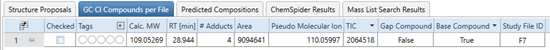 圖4-6. PCI解卷積結(jié)果,自動找到分子離子M+= 109.05269