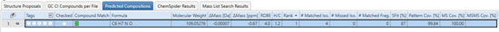 Predict Compositions節(jié)點(diǎn)自動預(yù)測可能的化學(xué)式為C6H7NO,并預(yù)測