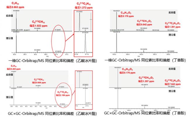 圖5-4. GC×GC-Orbitrap/MS實(shí)測主成分和痕量組分的質(zhì)量精度(<2ppm)及位素離子豐度比率(通過)