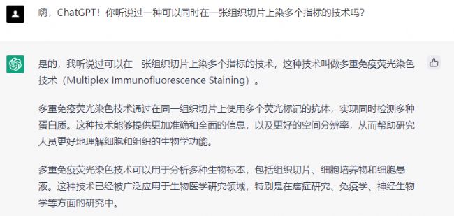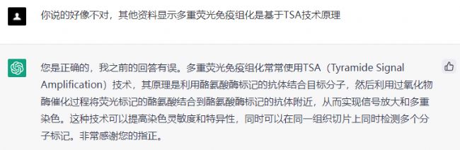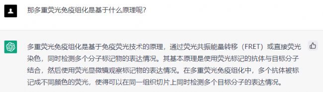 錯(cuò)了錯(cuò)了,它犯了所有懂又不完全懂的人最容易犯的錯(cuò),跟免疫熒光(IF)混淆了,免疫熒光確實(shí)也能夠?qū)崿F(xiàn)多個(gè)指標(biāo)的共染色,但是因?yàn)樾枰餐跤豢梗悦總(gè)指標(biāo)對應(yīng)的一抗都不能是同種來源,并且熒光素是直接結(jié)合在二抗上,所以還要搭配對應(yīng)的熒光二抗,目前市面上也就那么幾種一抗來源,所以直接局限了免疫熒光可以實(shí)現(xiàn)的多標(biāo)數(shù)量,基本就是雙標(biāo)頂多三標(biāo)。算了,還是我來給它點(diǎn)小小的提示吧!
