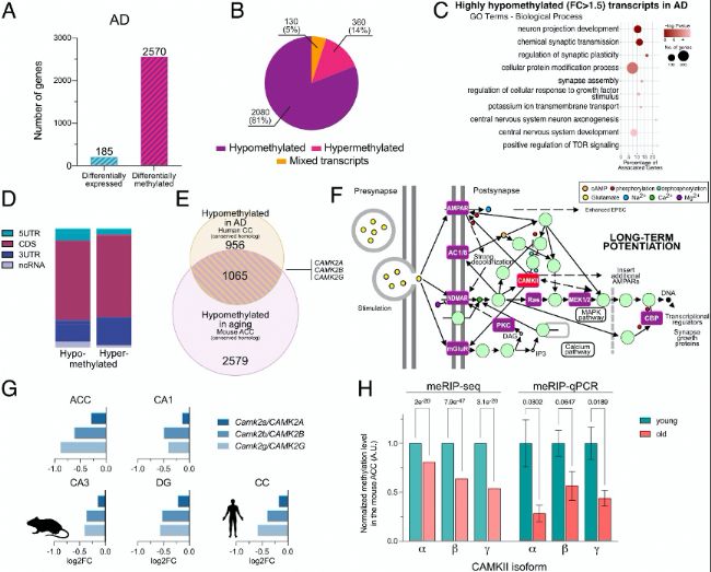 2023年02月22日,《美國國家科學院院刊》(Proc Natl Acad Sci USA)期刊發表了題為“Conserved reduction of m6A RNA modifications during aging and neurodegeneration is linked to changes in synaptic transcripts”的研究論文,該研究通過對小鼠和人的健康腦組織和AD(阿爾茨海默病,Alzheimer’s disease)患病腦組織進行MeRIP-seq、RNA-seq、MeRIP-qPCR等實驗,揭示m6A修飾減少與突觸蛋白合成受損相關。