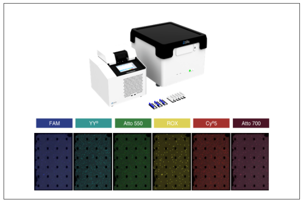 法國Stilla Technologies公司naica®六通道數字PCR系統,源于Crystal微滴芯片式數字PCR技術,自動化微滴生成和擴增,每個樣本孔可實現6熒光通道的檢測,智能化識別微滴并進行質控,3小時內即可獲得至少6個靶標基因的絕對拷貝數濃度。