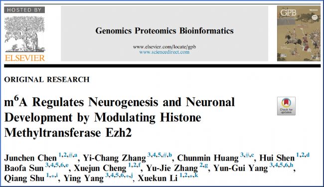 標題:m6A Regulates Neurogenesis and Neuronal Development by Modulating Histone Methyltransferase Ezh2(m6A修飾通過調(diào)節(jié)組蛋白甲基轉移酶Ezh2來調(diào)控神經(jīng)形成和神經(jīng)元發(fā)育)