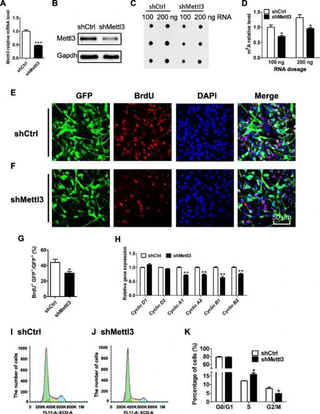 (2)m6A甲基化酶mettl3調(diào)控神經(jīng)干細胞增殖