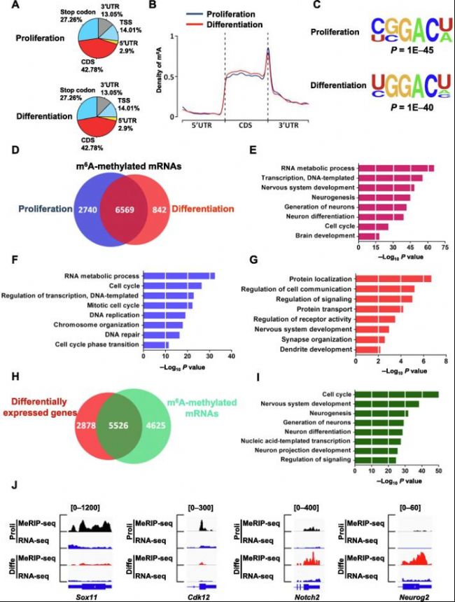 (C)增殖和分化細胞的m6A修飾區(qū)域motif分析
