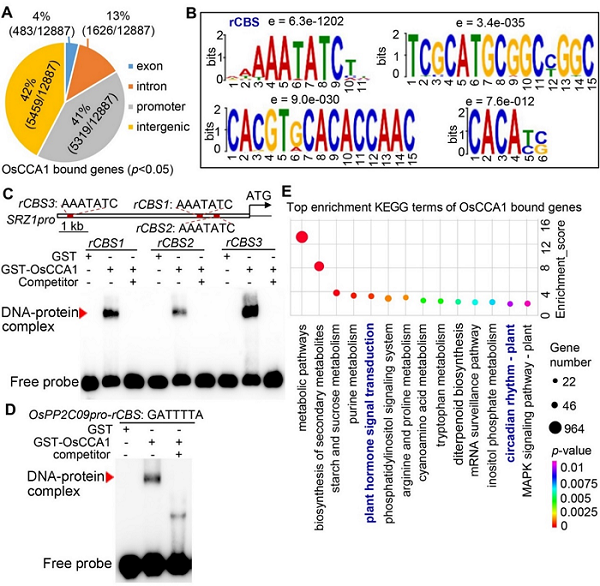 圖1. 使用DAP-seq方法,在全基因組水平上鑒定OsCCA1的直接結合靶點。