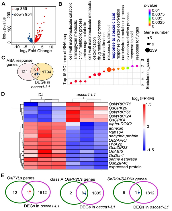 圖2. 使用RNA-seq發現OsCCA1調節ABA響應基因的表達。