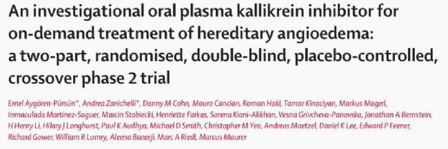 2. Aygören-Pürsün, Emel et al. “An investigational oral plasma kallikrein inhibitor for on-demand treatment of hereditary angioedema: a two-part, randomised, double-blind, placebo-controlled, crossover phase 2 trial.” Lancet (London, England) vol. 401,10375 (2023): 458-469.
