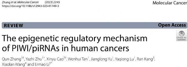 2023年03月07日,南華大學衡陽醫學院李二毛團隊在《Molecular Cancer》雜志發表了題為“The epigenetic regulatory mechanism of PIWI/piRNAs in human cancers”的綜述文章,討論了piRNA(PIWI-interacting RNA)的生物發生及其在人癌癥中的表觀遺傳調控機制的研究進展,如N6-甲基腺苷(m6A)甲基化、組蛋白修飾、DNA甲基化和RNA干擾,為癌癥的臨床診斷、治療和預后提供了新的見解。