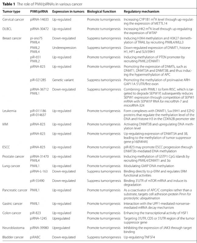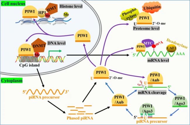 參考文獻:Zhang Q, Zhu Y, Cao X, Tan W, Yu J, Lu Y, Kang R, Wang X, Li E. The epigenetic regulatory mechanism of PIWI/piRNAs in human cancers. Mol Cancer. 2023 Mar 7;22(1):45.