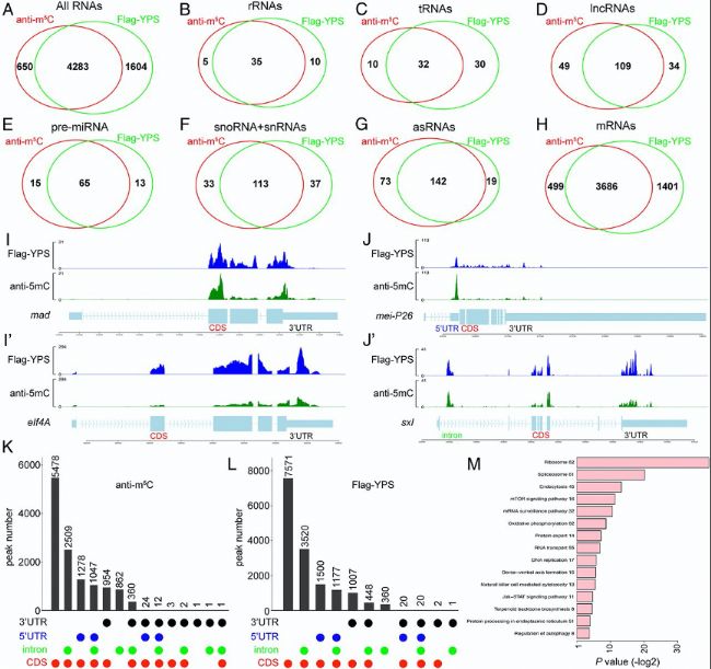 圖2:YPS優先與生殖細胞中帶有m5C修飾的RNA結合