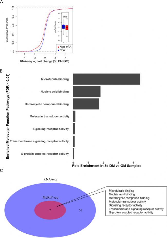 圖3:MeRIP-seq分析將微管結(jié)合鑒定為C2C12成肌細胞分化過程中m6A修飾的主要靶標