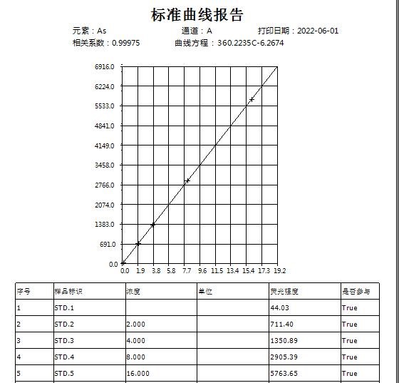 As: 0.0、 2.0 、 4.0 、8.0 、16.0 ug/L