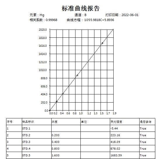 Hg: 0.0、 0.2 、 0.4 、0.8 、1.6 ug/L
