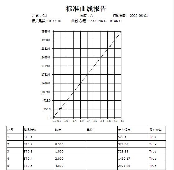Cd: 0.0、 0.5 、 1.0 、2.0 、4.0 ug/L