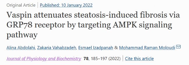 內(nèi)臟脂肪組織來源的絲氨酸蛋白酶抑制劑(vaspin)是由脂肪細(xì)胞、肝細(xì)胞和其他幾種組織釋放的脂肪因子,由于其改善胰島素抵抗和抗動(dòng)脈粥樣硬化的能力而受到廣泛關(guān)注,它在激活各種信號(hào)通路中起主要作用。Vaspin可作為內(nèi)皮細(xì)胞和卵巢細(xì)胞以及活化的蛋白激酶A(PKA)信號(hào)通路中GRP78受體的配體。也有報(bào)道稱,vaspin與肝脂肪變性以及纖維化進(jìn)展密切相關(guān)。