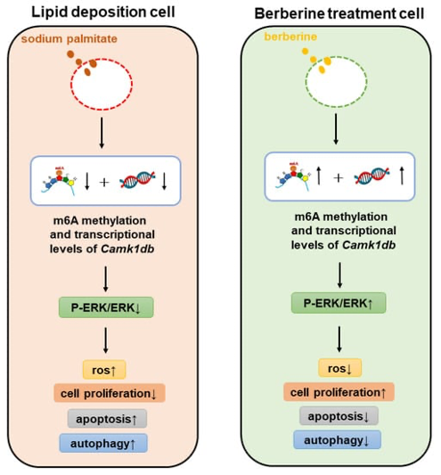 標題:Berberine Regulation of Cellular Oxidative Stress, Apoptosis and Autophagy by Modulation of m6A mRNA Methylation through Targeting the Camk1db/ERK Pathway in Zebrafish-Hepatocytes(小檗堿通過靶向斑馬魚肝細胞中的Camk1db/ERK通路介導m6A mRNA甲基化以調控細胞氧化應激、凋亡和自噬)