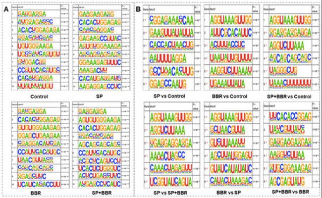 (A) ZFL中不同處理組的前十個motif分析。(B) 每組前六位motif分析*-可能為假陽性。