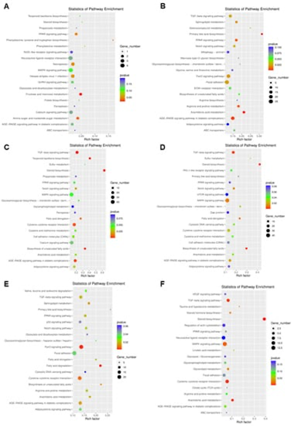 圖6:各組甲基化和轉錄水平差異顯著基因的KEGG富集分析。