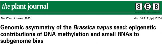 標(biāo)題:Genomic asymmetry of the Brassica napus seed: epigenetic contributions of DNA methylation and small RNAs to subgenome bias(甘藍(lán)型油菜種子的基因組不對(duì)稱性:DNA甲基化和小RNA對(duì)亞基因組偏好的表觀遺傳貢獻(xiàn))