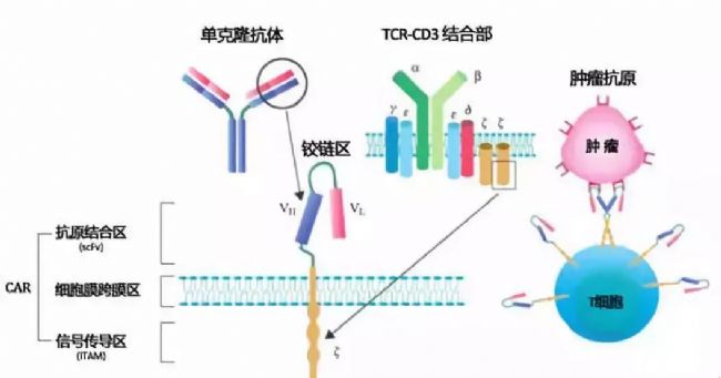 嵌合抗原受體(chimeric antigen receptor,CAR)指的是嵌合抗原受體T細胞通過識別某種腫瘤抗原的抗體的抗原結合部與CD3-δ鏈或FcεRIγ的胞內部分在體外偶聯為一個嵌合蛋白,通過基因轉導的方法轉染患者的T細胞,使其表達嵌合抗原受體,使得患者的T細胞被“重編碼”后,能夠生成大量腫瘤特異性的CAR-T細胞。把重新編碼后的嵌合抗原受體T細胞加進患者身體里,這種嵌合抗原受體就像GPS一樣可以特異性地追蹤和識別并引導T細胞殺傷腫瘤細胞。以CAR為基礎的細胞免疫治療是一種新的治療惡性腫瘤的模式,越來越多的臨床試驗結果證實了CAR-T細胞免疫治療的效力, 特別是血液病方面, 如白血病, 淋巴瘤。當然,在實體瘤的治療方面仍需要不斷努力。